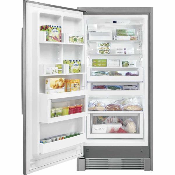 This ge frost free upright freezer has an exterior electronic temperature control for easy adjustments.
